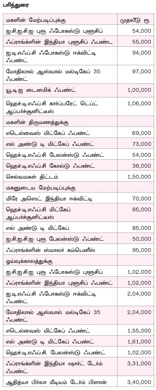 இனி, இவருக்கான நிதித் திட்டமிடலைத் தருகிறார் நிதி ஆலோசகரும் மைஅஸெட் கன்சாலிடேஷன். காமின் நிறுவனருமான சுரேஷ் பார்த்தசாரதி.